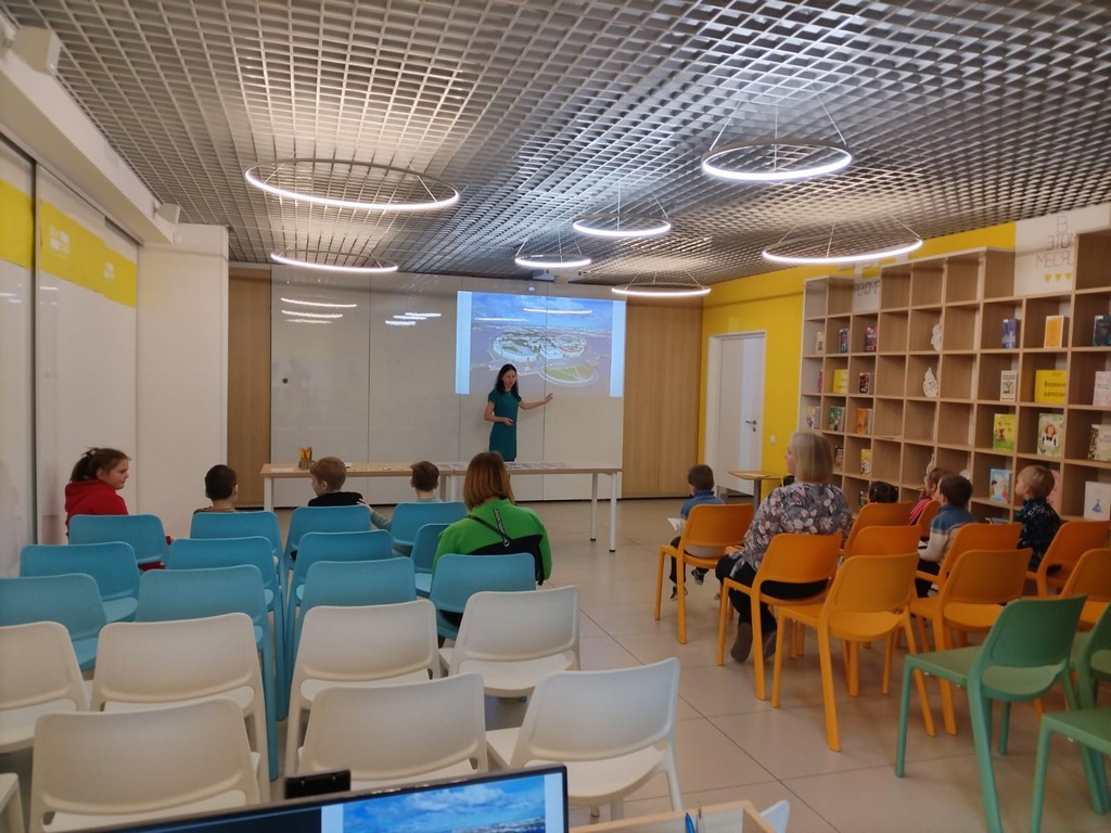 Юные читатели отправились в виртуальное путешествие по Неве, обсуждали достопримечательности Санкт-Петербурга. Путешествие состоялось в игровой форме на историческом фрегате «Орел», название которого отгадали юные путешественники. Также по ходу интерактивной прогулки ребята отгадывали ребусы и выполняли задания, с помощью которых им удалось расшифровать тайный код. Каждая достопримечательность открывала свою историю и таила новое задание. В конце прогулки у ребят на палубе корабля получился шифр, который являлся знаменательной датой — это День рождения Санкт-Петербурга.