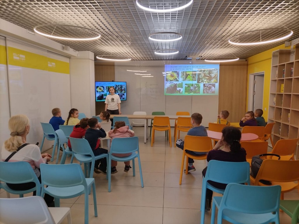 В начале занятия ребят познакомили с трогательной историей про маленького медвежонка, который родился в берлоге зимой и только начинает знакомиться с миром вокруг. Ему очень хочется найти друга, но все вокруг — птицы, зайцы и даже волки готовятся к приходу весны и очень заняты. Вместе с главным героем участники путешествовали по лесу, знакомились с удивительными изменениями в природе и рассуждали о том, как правильно подготовиться к весне. В завершении занятия юным читателям предложили раскрасить по номерам картинку-загадку и отгадать, какой весенний помощник зашифрован в рисунке. У каждого получилась уникальная пчёлка.