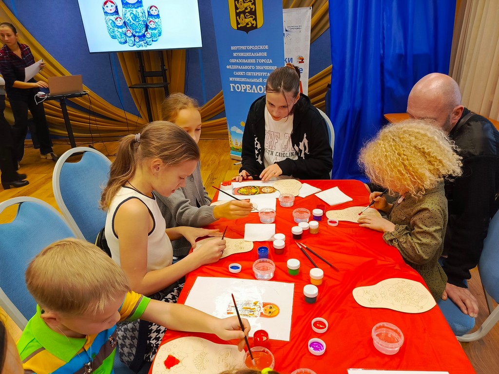 10 ноября 2024 года в Библиотеке № 4 «Горелово» для жителей микрорайона состоялся мастер-класс по росписи матрёшек. Мероприятие организовано при содействии МО Горелово. Мастер-класс посвящен Дню народного единства, отмечаемого 4 ноября.