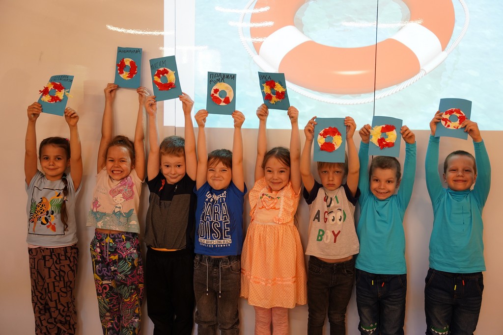 Ребятам продемонстрировали макет озера и капельки из бумаги, на каждой из которых было изображено правило поведения у водоема. В ходе познавательной беседы ведущие расширили представления детей о безопасном поведении на водоёме. Дети проверили полученные знания в игре «Да и нет», отвечая на вопросы викторины. На мастер-классе участники изготовили аппликацию «спасательный круг» из цветной бумаги.