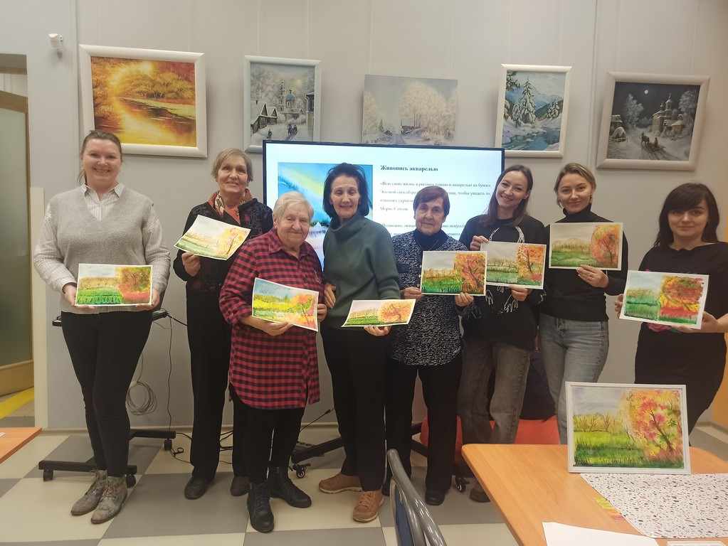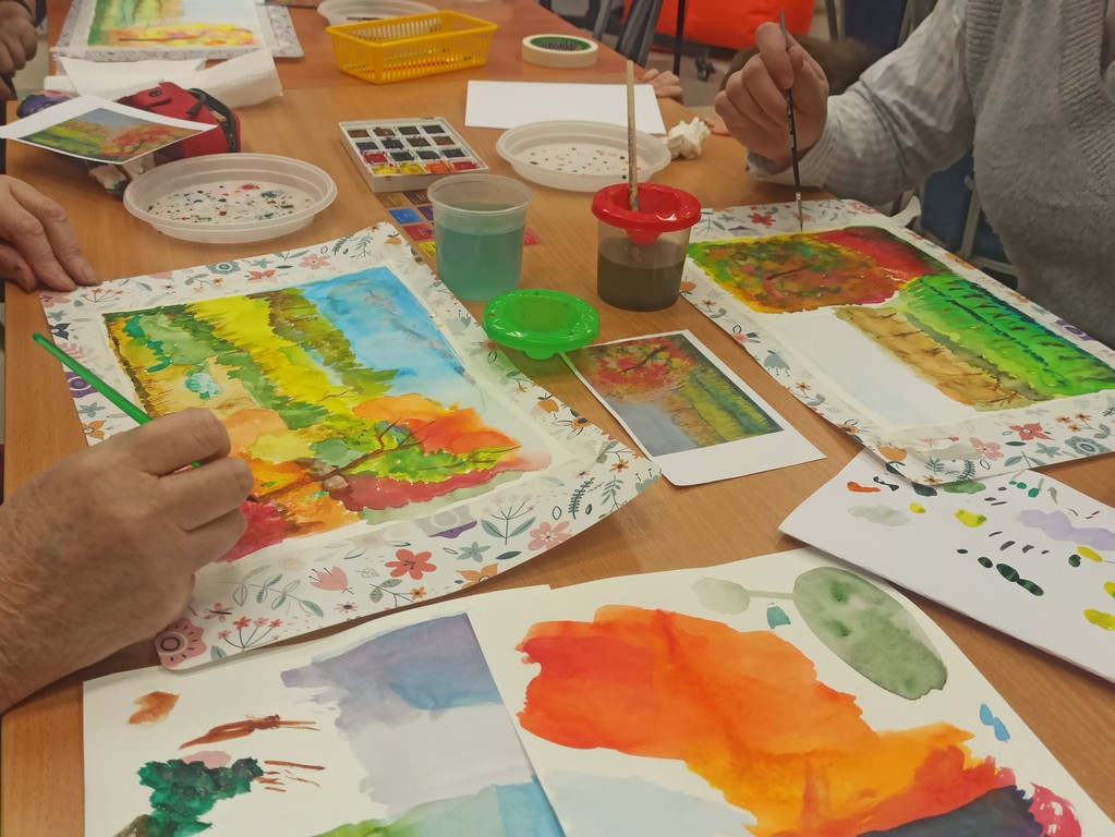 Важными техническими свойствами акварели являются структура, прозрачность и светлота красок. Участники мастер-класса нарисовали яркий и эмоциональный осенний пейзаж, передали невероятную красоту природы. Мероприятие стало полезным и интересным для всех.