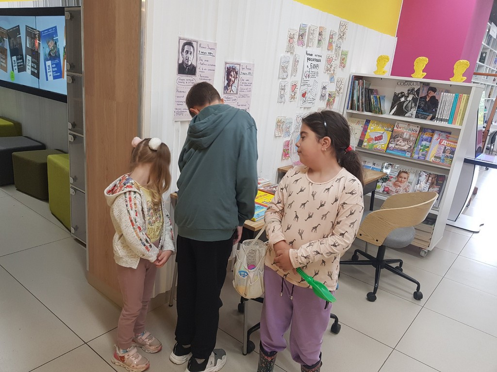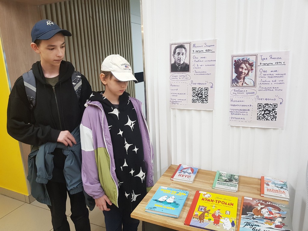 В рамках акции была подготовлена интерактивная книжная выставка.На выставке были представлены книги из золотого фонда отечественной и зарубежной литературы. Для привлечения внимания читателей рядом с книгами были расположены красочные постеры с интересными фактами из биографий Михаила Зощенко и Туве Янссон. Также на постерах были представлены qr-коды, пройдя по которым можно было найти рекомендации книг Зощенко и Янссон из фондов других библиотек города. Читатели были проинформированы о возможности заказывать книги из других библиотек через портал spblib.ru.