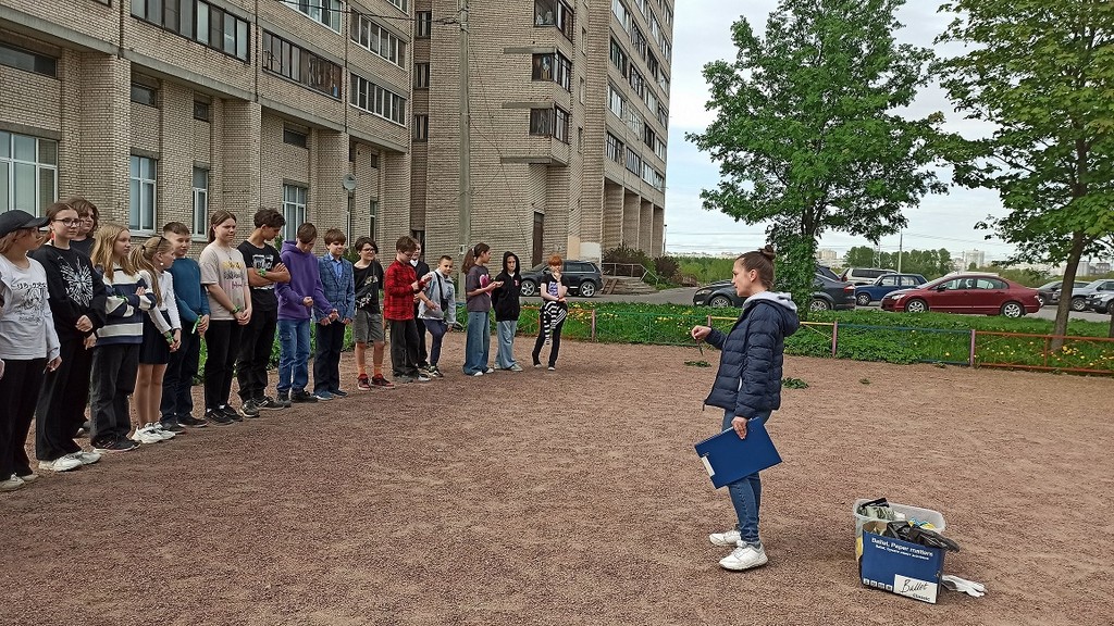 на команды. Их задача – на скорость собрать как можно больше мусора. А чтобы уборка не превратилась в рутину, командам предложили попутно разгадывать загадки, Спустя полтора часа мусор взвесили и подвели итоги соревнования: собрано более 100 килограммов мусора. Победители получили памятные призы. Каждый желающий внес свой вклад в благоустройство Красносельского района.