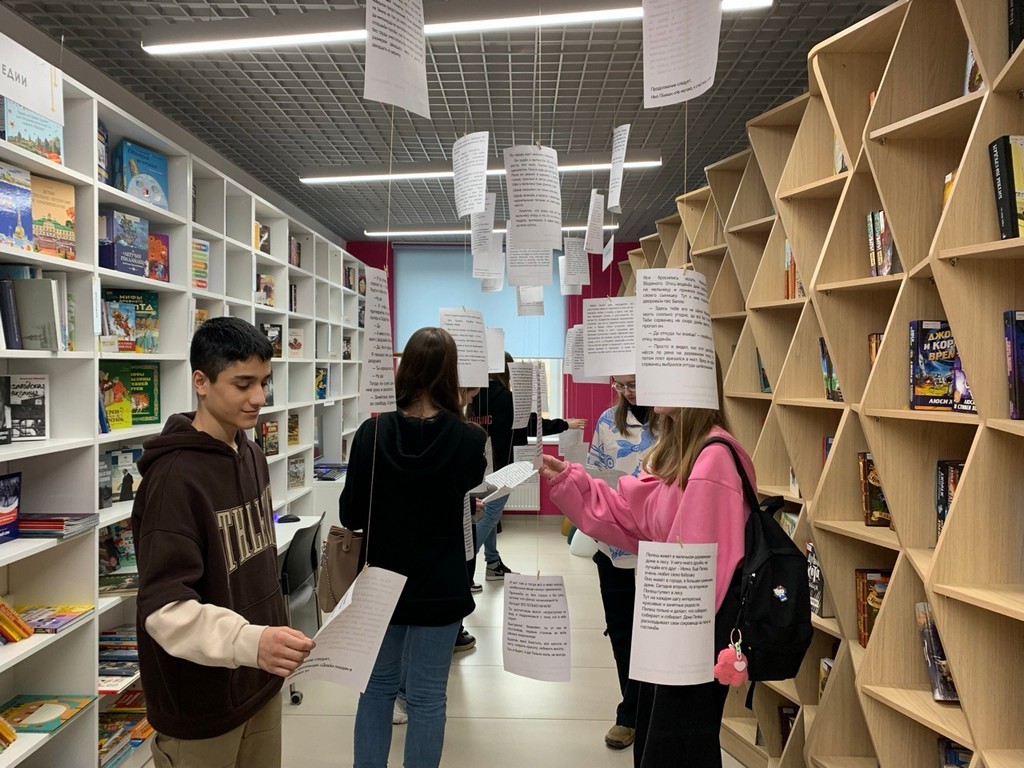 Инсталляция представила собой парящие в воздухе листы белой бумаги с наиболее яркими фрагментами из произведений русской и зарубежной литературы. Участники инсталляции оказываются в пространстве библиотеки среди завораживающих текстов, тщательно подобранных из разнообразия изданий, хранящихся в фонде. Знакомясь с отрывками произведений, герои увлекают читателей и у них возникает желание взять книгу и продолжить чтение дома.