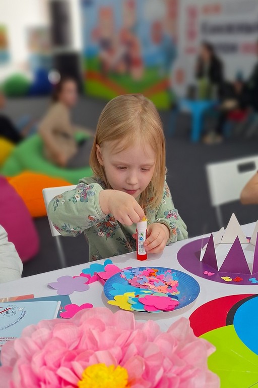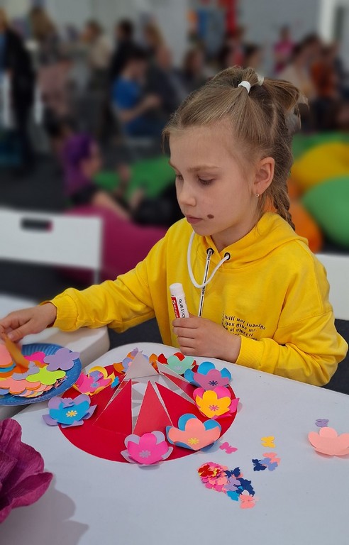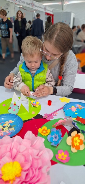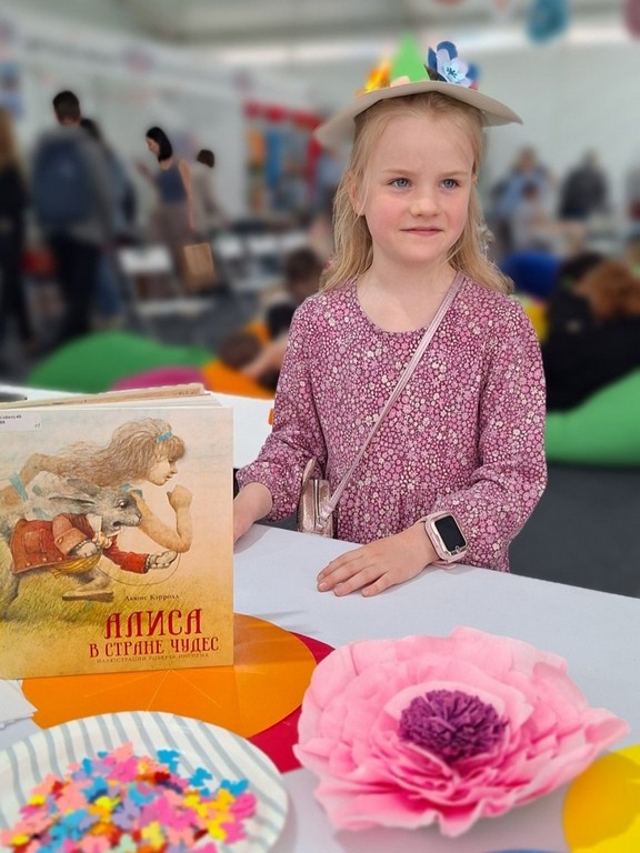 На детской площадке Книжного салона команда Детской библиотеки № 11 «Остров сокровищ» подготовила интерактивную семейную программу «Мастерская Шляпника»