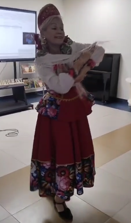 В. Толкуновой, русские народные песни, песни о Родине и любви и цыганские песни. Виктория Владимировна исполнила два танца русский народный и цыганский. Гости библиотеки активно поддерживали исполнителей громкими аплодисментами.