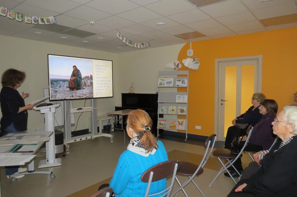 16 апреля 2024 года в Библиотеке № 14 Библиотечно-информационный центр «Интеллект» состоялась лекция «Образ Иисуса Христа в русской живописи» в рамках проекта «Заметки на подрамнике».
