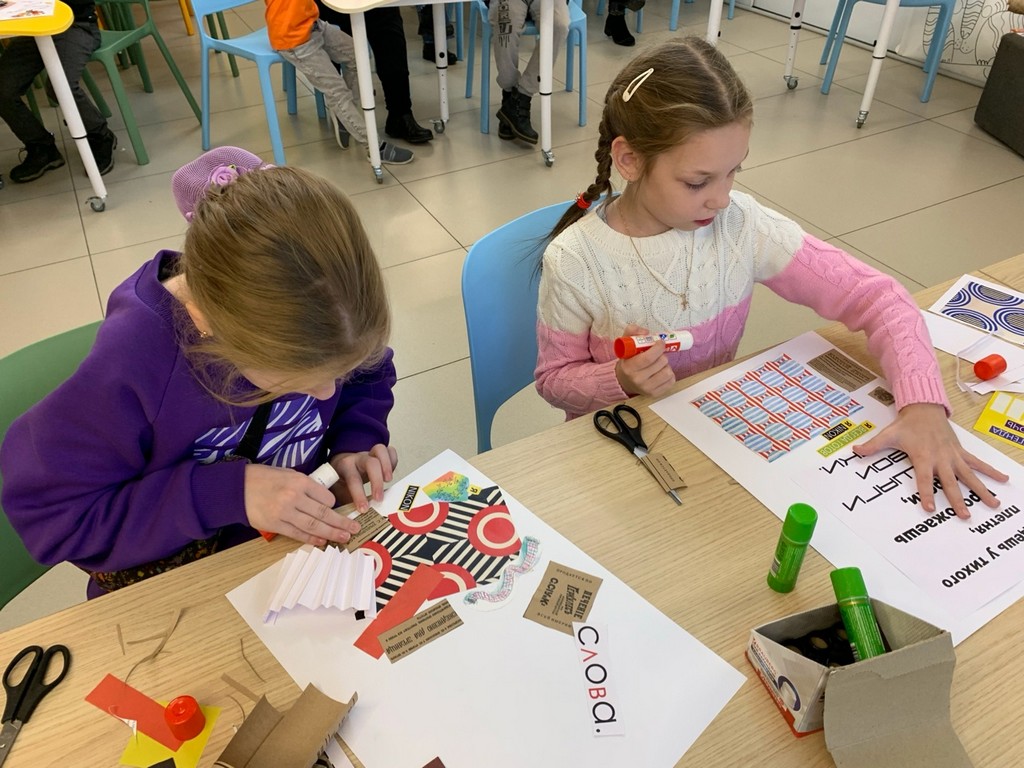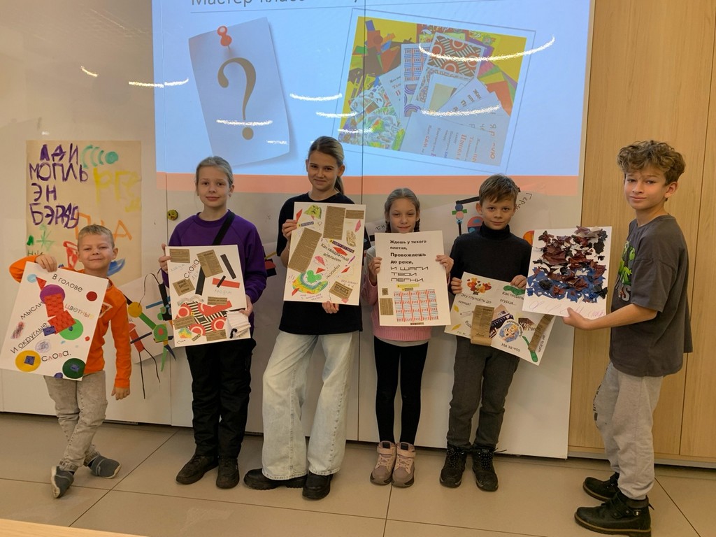 Встреча завершилась мастер-классом, где каждый участник попробовал создать уникальный коллаж по мотивам поэтических строк представителей отечественной литературы разных эпох - А.С. Пушкина, С.Я. Маршака, А.А. Орловой, М.Н. Рупасовой и др. С главной задачей, чтобы визуальное сопровождение отражало звучание стихотворения, ребята справились «на отлично»!