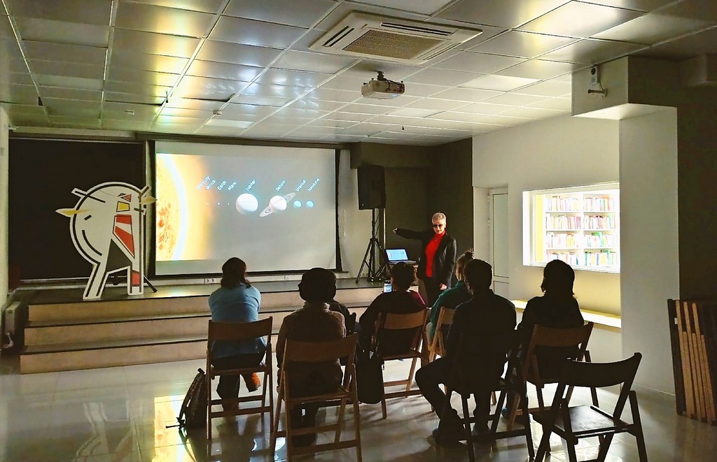 4 декабря 2024 года в библиотечном центре «Маяк» прошла познавательная лекция «Саундтрек Солнечной системы», ведущей которой стала Ирина Михайлова – популяризатор астрономии и лектор СПАГО (Санкт-Петербургское астрономо-геодезическое общество).