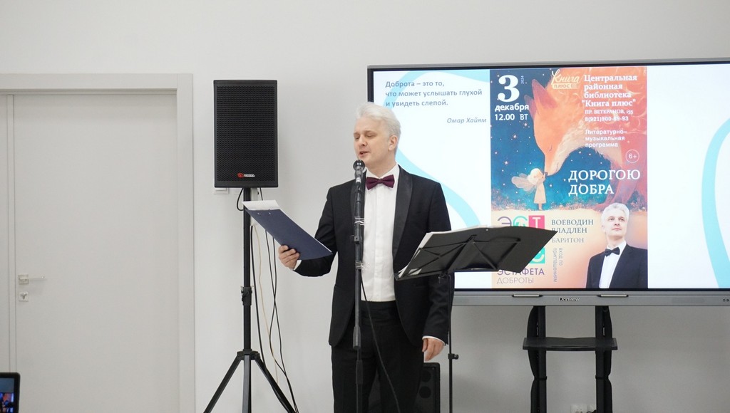 3 декабря 2024 в Центральной районной библиотеке «Книга плюс» состоялась литературно-музыкальная программа «Дорогою добра» в рамках международного фестиваля «Эстафета доброты 2024» для жителей дома социального обслуживания «Сосновая Поляна»