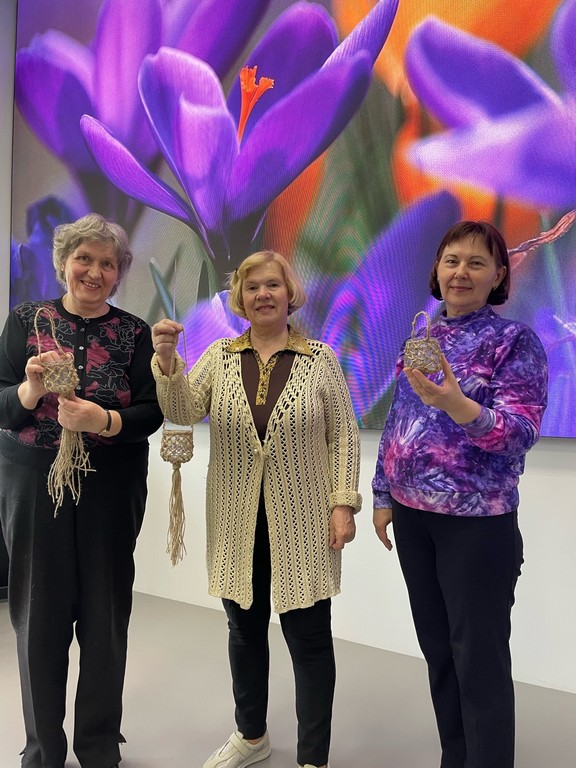 На занятии пользователи познакомились с техникой макраме, инструментами