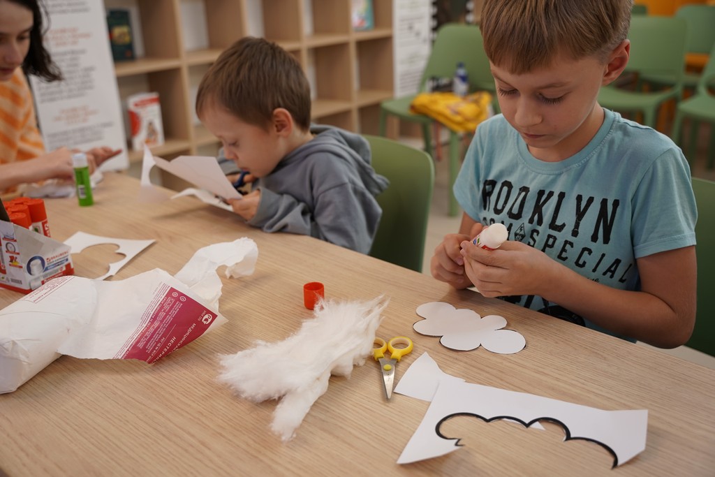 В конце мастер-класса юные читатели БИАР создали поделки. Ребята с воодушевлением занимались творчеством, создавая оригинальные поделки в виде облаков, используя вату и воздушный пластилин. Атмосфера была наполнена радостью и креативностью, когда участники погрузились в процесс работы.