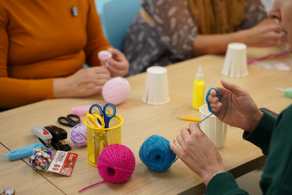 На мастер-классе участникам было предложено попробовать себя в изготовлении небольших корзин из бумажных стаканчиков и ниток. Каждый смог выбрать себе понравившееся сочетание цветов и украшение для корзиночки. В приятной атмосфере участники почувствовали себя настоящими дизайнерами.