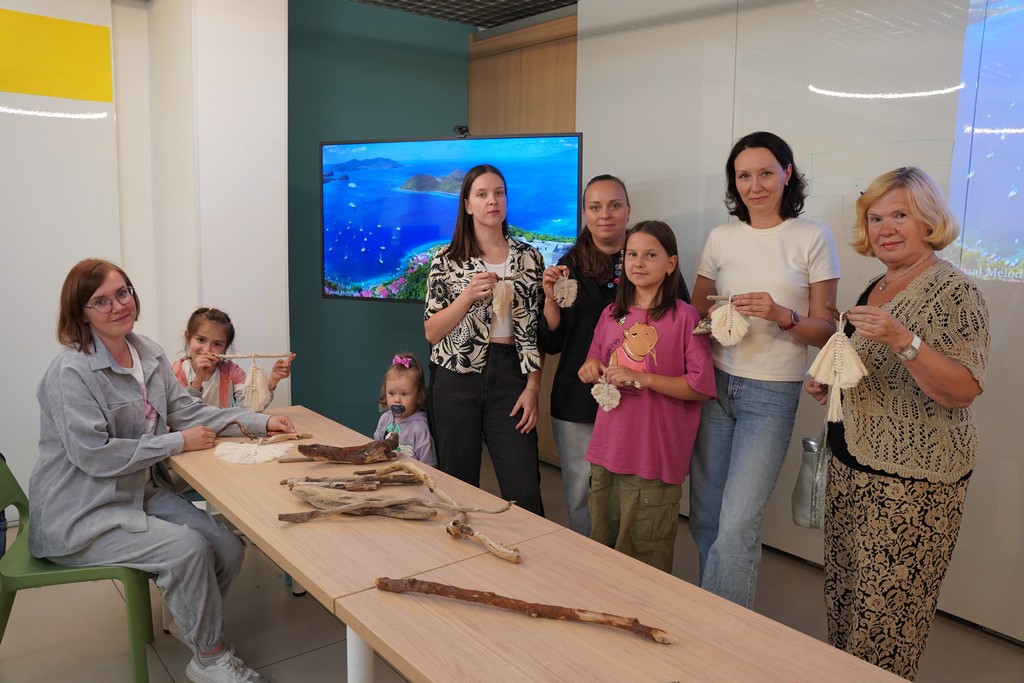 На мастер-классе участникам было предложено попробовать классический вариант плетения макраме. Хлопковые нити были связаны между собой и прикреплены к основной нити. В результате каждый участник унес домой декоративное панно и прекрасное настроение.