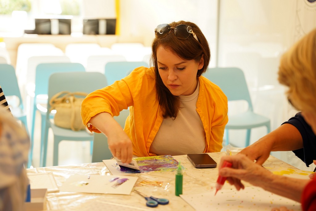 Вдохновившись работами Герхарда Рихтера участникам было предложено попробовать себя в абстрактной живописи. Сначала на акварельной бумаге, а затем на холстах участники мастер-класса наносили точки яркими красками. Далее получившиеся узоры были смазаны шпателем для достижения желаемого эффекта.