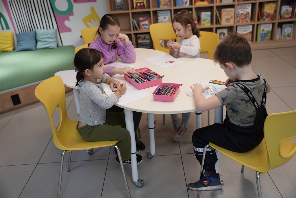 Параллельно с мастер-классом для взрослых в зоне абонемента проходили интересные занятия с детьми. Многие участники пришли семьями со своими детьми, для них тоже был организован досуг. Ребята с удовольствием читали вслух свои любимые книги, раскрашивали фломастерами деревянные фигурки, а также играли в словесные литературные игры.