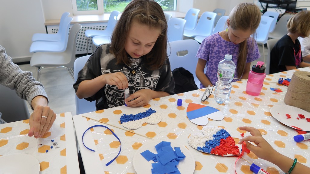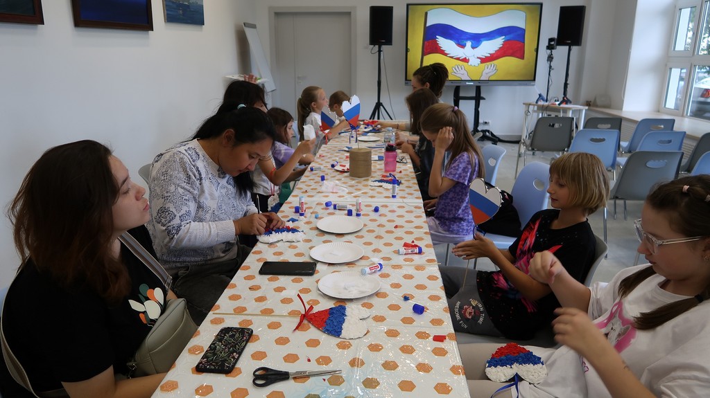 В мастер-классе приняли участие ребята из детского оздоровительного лагеря при КЦСОН. Каждый ребёнок создавал своё мягкое и любящее «сердце России». Ребята мастерили поделку в виде сердечка в цветах российского флага.