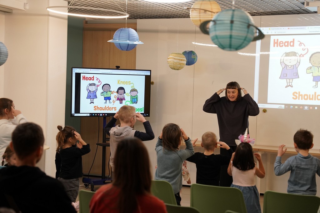 В течение мастер-класса участники изучили следующую лексику английского языка: head, shoulders, knees, toes, eyes, ears, mouth, nose. Все слова относились к определенной теме – анатомия.