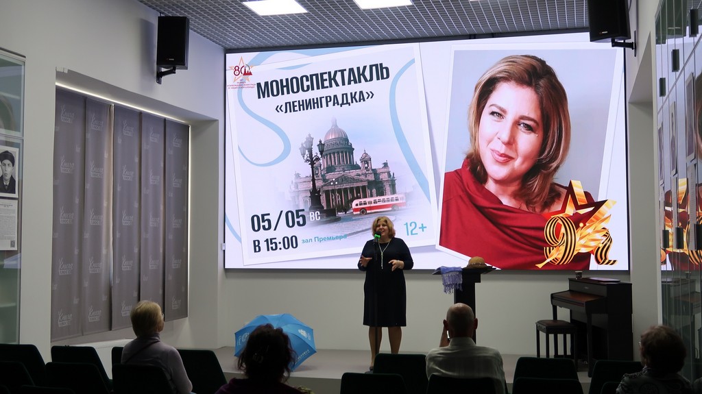 В преддверии Дня Победы пользователям библиотеки был представлен спектакль «Ленинградка» в исполнении автора – поэта Натальи Пекарж. Это её объяснение в любви родному городу, напоминание об его истории, дань его подвигу и трепетный рассказ
