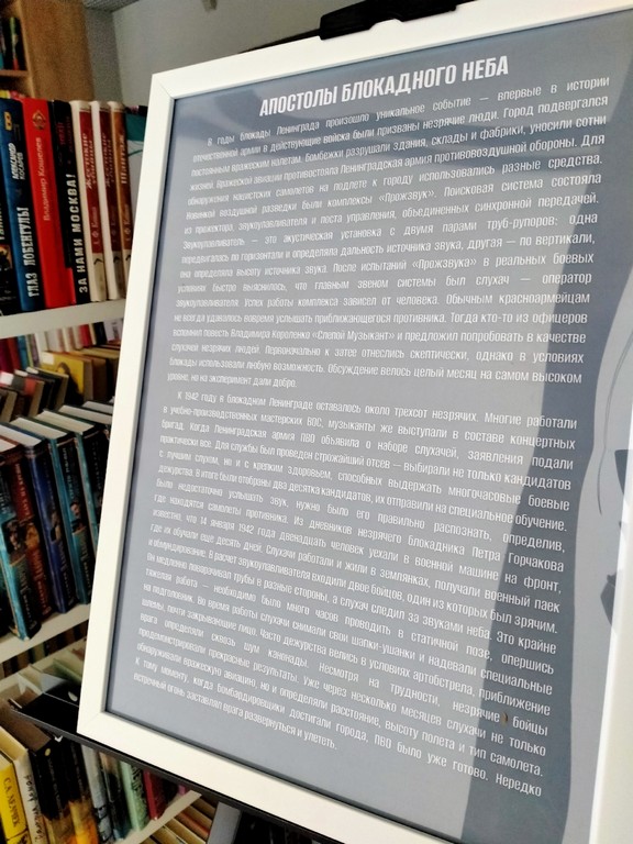 В Центральной районной библиотеке «Книга плюс» открылась экспозиция «Апостолы блокадного неба», посвященная подвигу незрячих слухачей, защитников неба блокадного Ленинграда.