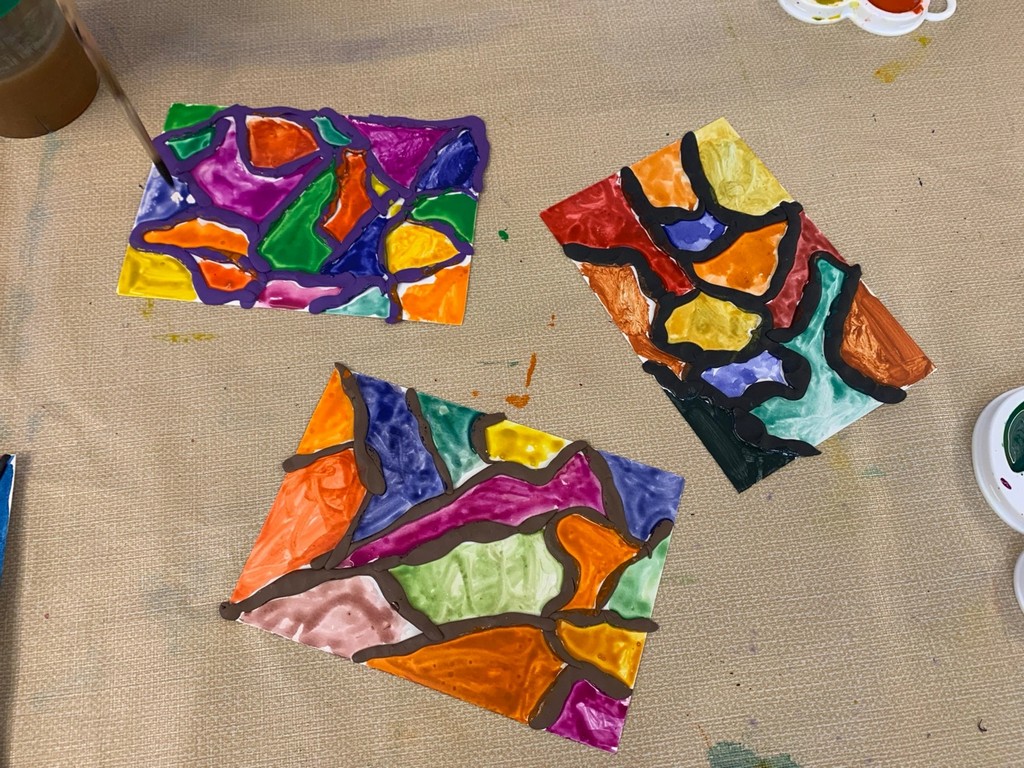 На творческих заданиях юные умельцы попробовали себя в роли средневековых мастеров: сделали оригинальные аппликации «Готическая роза» и яркие витражи в смешанной технике.