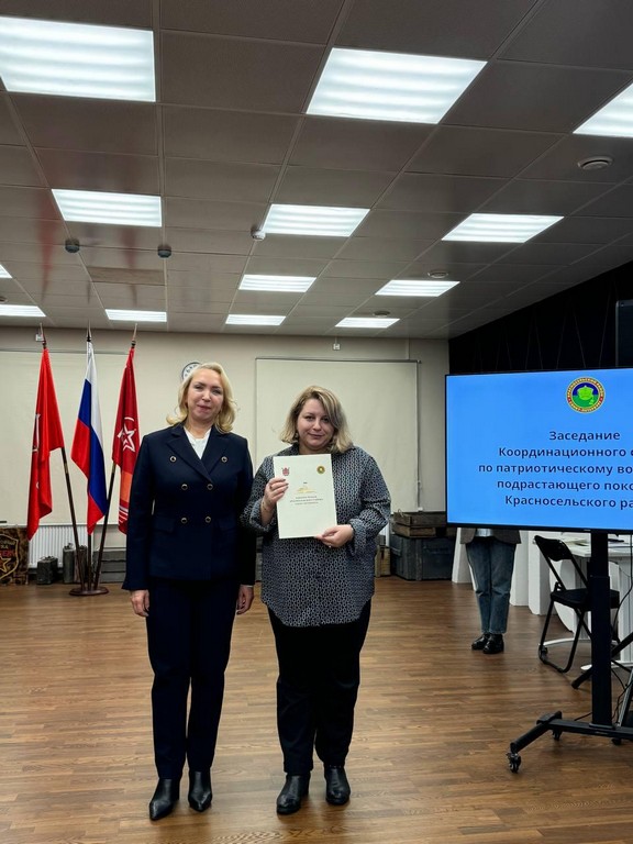 25 ноября на площадке ПМК «Непокоренный рубеж» в рамках Координационного совета по патриотическому воспитанию подрастающего поколения Красносельского района Санкт-Петербурга прошло награждение сотрудников образовательных учреждений, сферы социального обслуживания, культуры за вклад в развитие патриотического воспитания молодёжи Красносельского района Санкт-Петербурга.