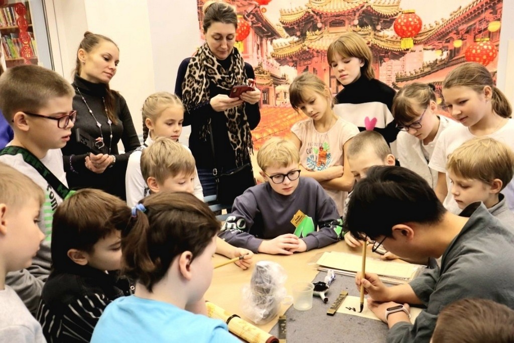 16 ноября в гости в Детскую библиотеку «Остров сокровищ» снова приехал наш дорогой друг Кайюэ Чжан, талантливый мастер китайской каллиграфии, родом из древнего города Сиань. Этот город, с его богатейшей историей, насчитывающей более трех тысяч лет, является настоящим культурным наследием Китая.