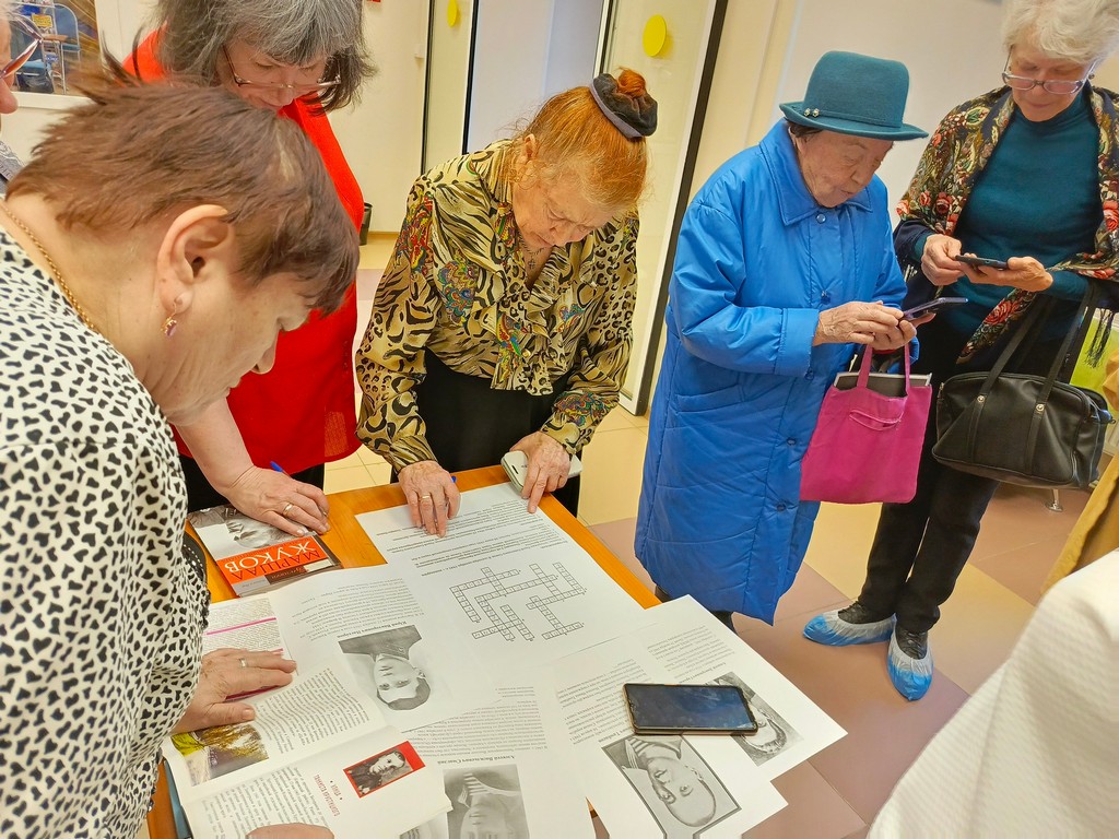 Ведущие предложили пользователям библиотеки решить кроссворд, в котором зашифрованы фамилии героев Великой Отечественной войны. В Петербурге названия более 120 улиц, проспектов и площадей связаны с Великой Отечественной войной. Значительная часть из них находится на Юго-Западе города — в Красносельском районе. Все присутствующие не только увлеченно отгадывали задания и отвечали на вопросы, но и узнавали интересные факты о Красносельском районе.