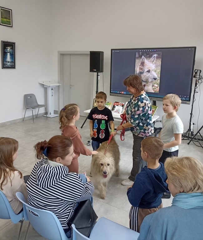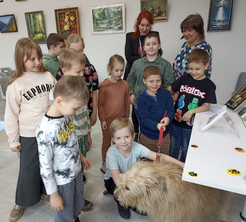 Книги о собаках, конечно, не заменят настоящего друга, поэтому сотрудники библиотеки решили, что участникам встречи доставит радость знакомство с настоящим четвероногим другом! В гости к детям пришла собака Солнышко, бывшая воспитанница приюта «Полянка», а теперь – любимая домашняя собака. Такие встречи наполняют сердце теплом и вызывают самые добрые чувства.