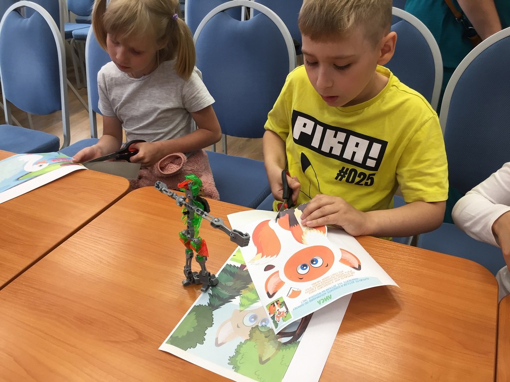 В конце мероприятия ребята сделали аппликации из бумаги «Животные». С помощью готовых шаблонов, клея и ножниц получились замечательные лисички, ежик и лебедь.